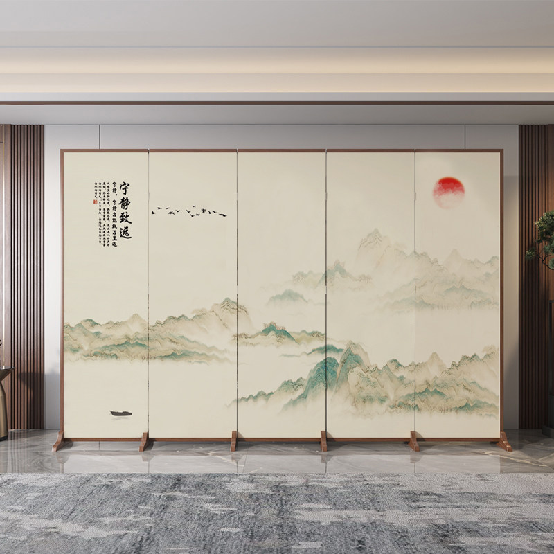 推荐理由:远山近水屏风定制新中式水墨山水类素材折叠屏风书画花鸟图案定制