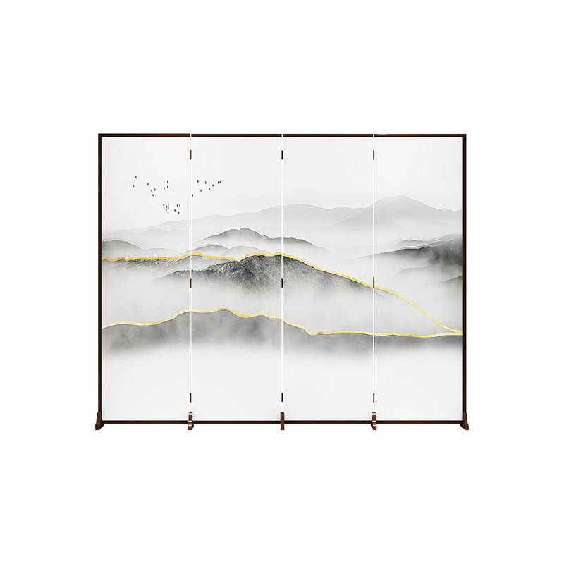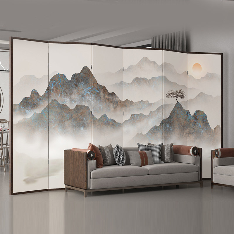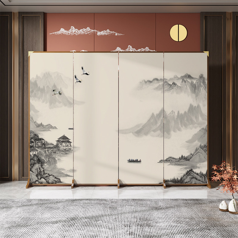 远山近水屏风定制新中式水墨山水类素材折叠屏风书画花鸟图案定制