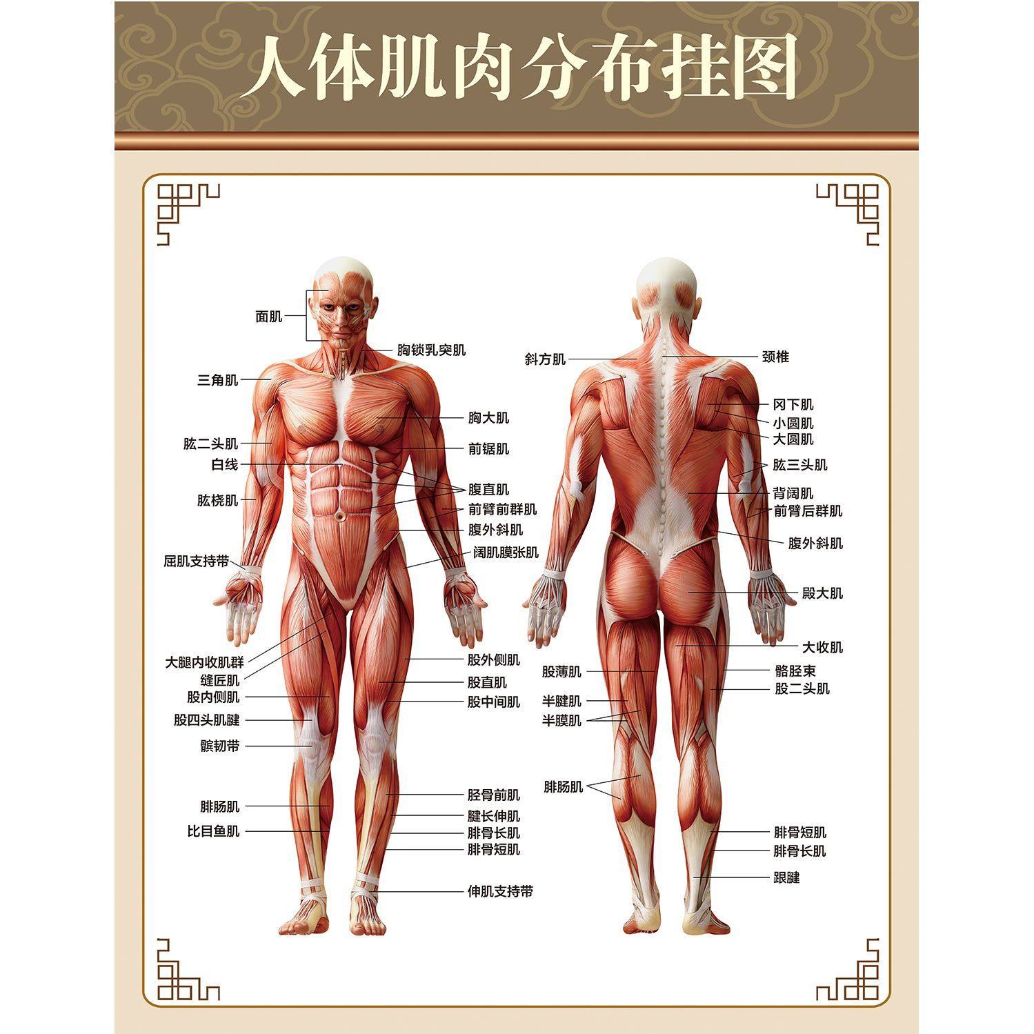 人体肌肉结构图挂画健身房布置墙贴装饰画身体背面正面分布图