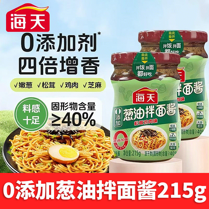 推荐理由:海天葱油拌面酱215g松茸鸡肉味简单好拌浓香双倍提鲜调味料多规格