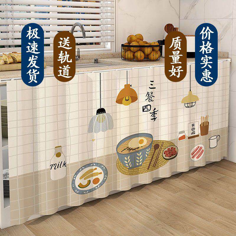 整体橱柜遮挡帘厨房遮丑神器滑轨魔术贴免打孔门帘柜子防尘拉帘遮